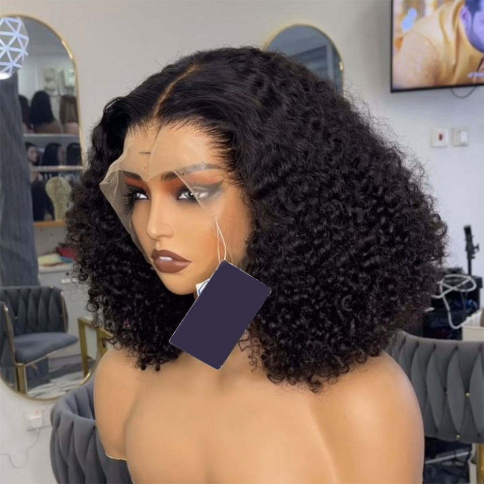 วิกผมสั้นหยิกบ๊อบลูกไม้ด้านหน้าผมบราซิลเรีมี่วิกผมหยิกหยักศกแบบสั้น13x4วิกผมพิกซี่ด้านหน้า