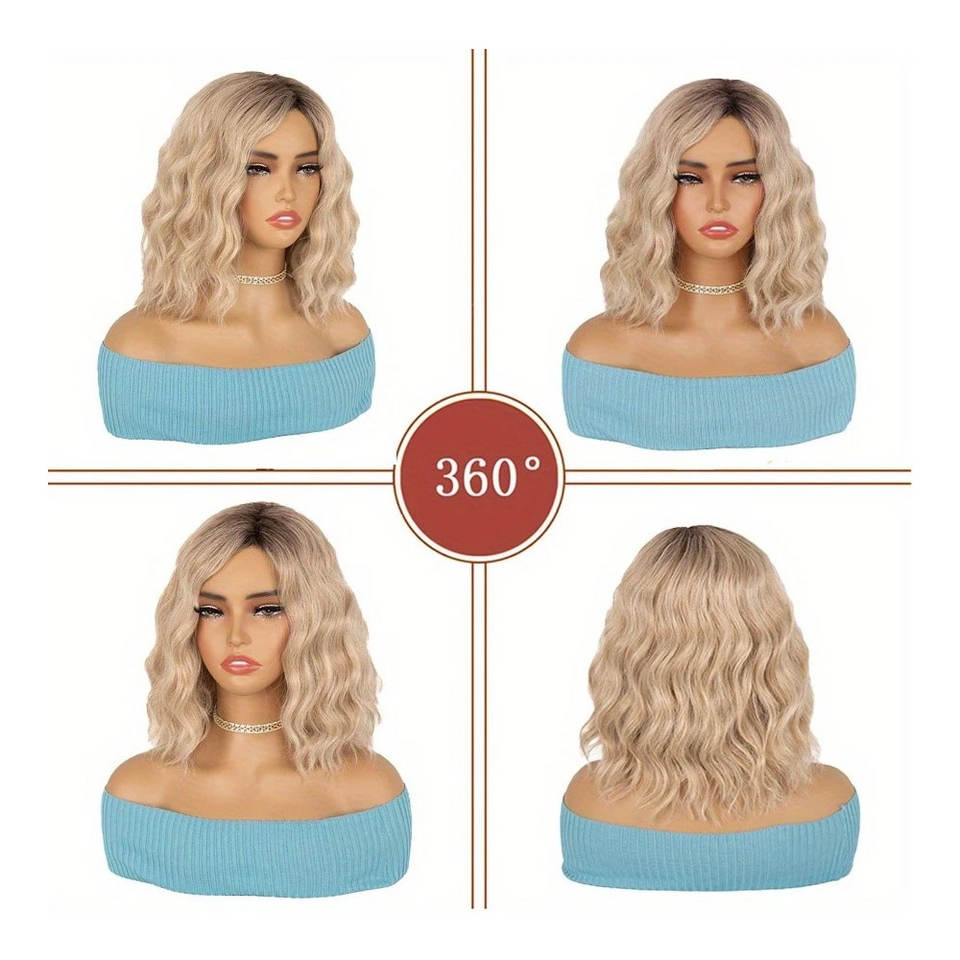 วิกผมสังเคราะห์สั้นสีบลอนด์ผมหน้าม้าวิกผมลอนสำหรับปาร์ตี้วิกผมนุ่มทนความร้อนดูเป็นธรรมชาติ