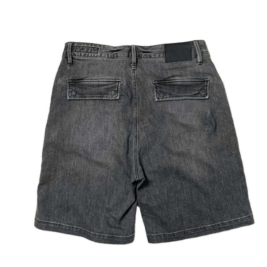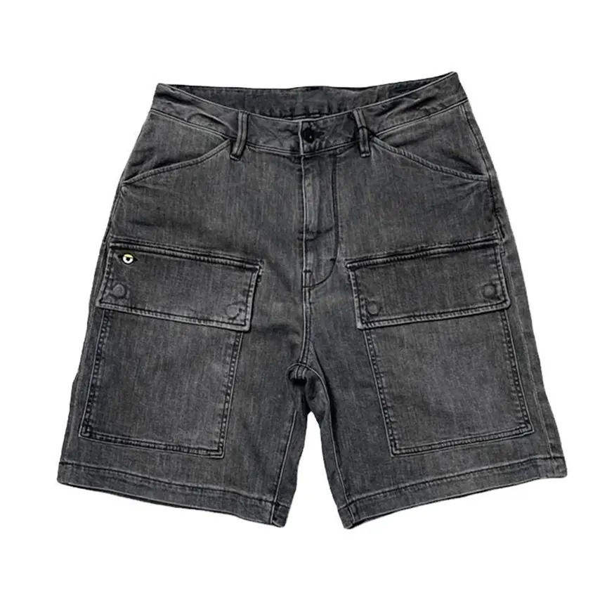 กางเกงยีนส์ขาสั้นสีดำ ผ้าเดนิม กางเกงขาสั้นผู้ชาย ผ้าแคนวาส สไตล์ไฮสตรีทสำหรับผู้ชาย