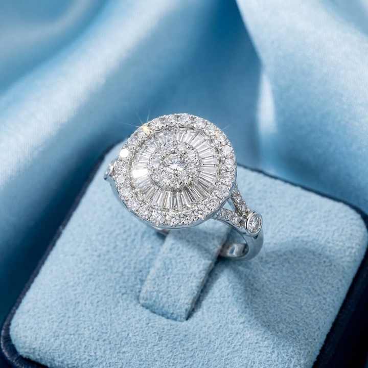 แหวนเพชรแท้ทรงกลมเจียระไนแบบบริลเลียนท์คัท ทองคำขาวคุณภาพสูง ดีไซน์คลาสสิก สำหรับผู้หญิง ระยะเวลาจัดส่งรวดเร็ว