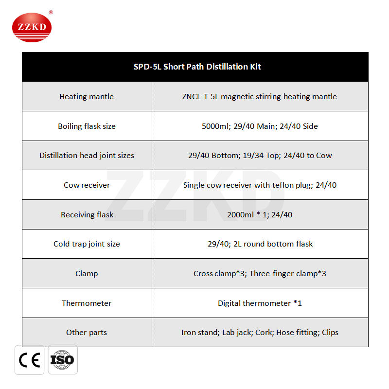 ขนาดข้อต่อหัวกลั่น:29/40ด้านล่าง; 19/34ด้านบน; 24/40เป็นวัว