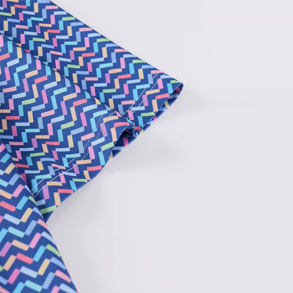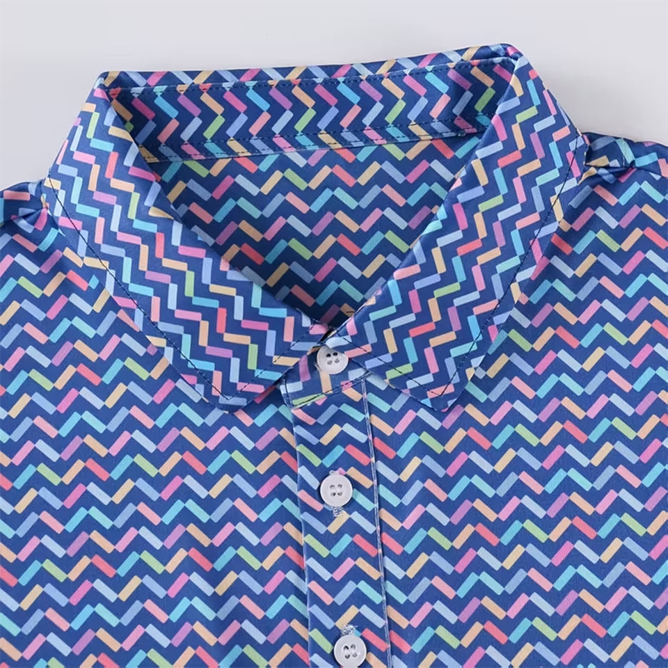 เสื้อกอล์ฟผู้ชายแขนสั้น ผ้าถัก ระบายอากาศ ป้องกันรอยยับ ดีไซน์ผ่าครึ่งวงกลม พิมพ์ลายแบบซับลิเมชั่น ทรงเข้ารูป