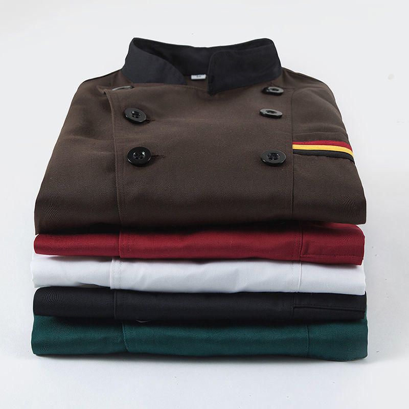เสื้อแจ็กเก็ตคอปกแขนสั้นเครื่องแบบเชฟพนักงานร้านตัดผมสำหรับร้านกาแฟร้านตัดผม