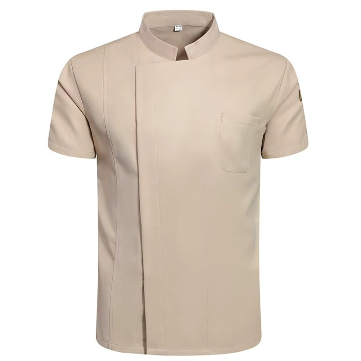 เสื้อแจ็กเก็ตคอปกแขนสั้นสำหรับมืออาชีพร้านกาแฟร้านเบเกอรี่บริกรช่างตัดผมชุดทำงานโรงแรมและร้านอาหารเสื้อโค้ทเชฟ