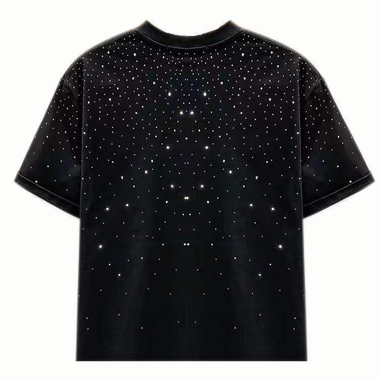 เสื้อยืดแขนสั้นผู้ชาย คอกลม สตรีทแวร์ ผ้าฝ้าย 100% ถักลายตัวอักษรประดับเพชร พิมพ์ลายการ์ตูน แบบ DTF สกรีนลาย ชุดฤดูร้อน