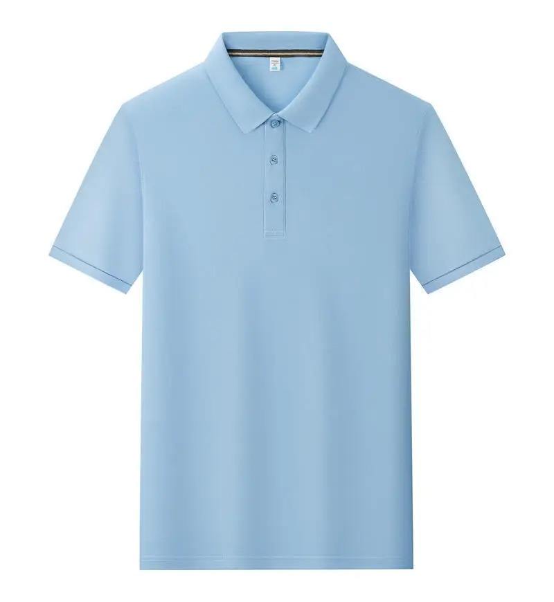 เสื้อโปโลแขนสั้นผู้ชายแฟชั่นฤดูร้อนสไตล์เกาหลีเสื้อยืดครึ่งแขนลำลองลายทางปักโลโก้