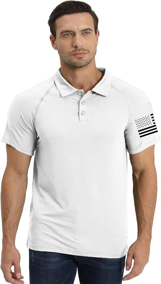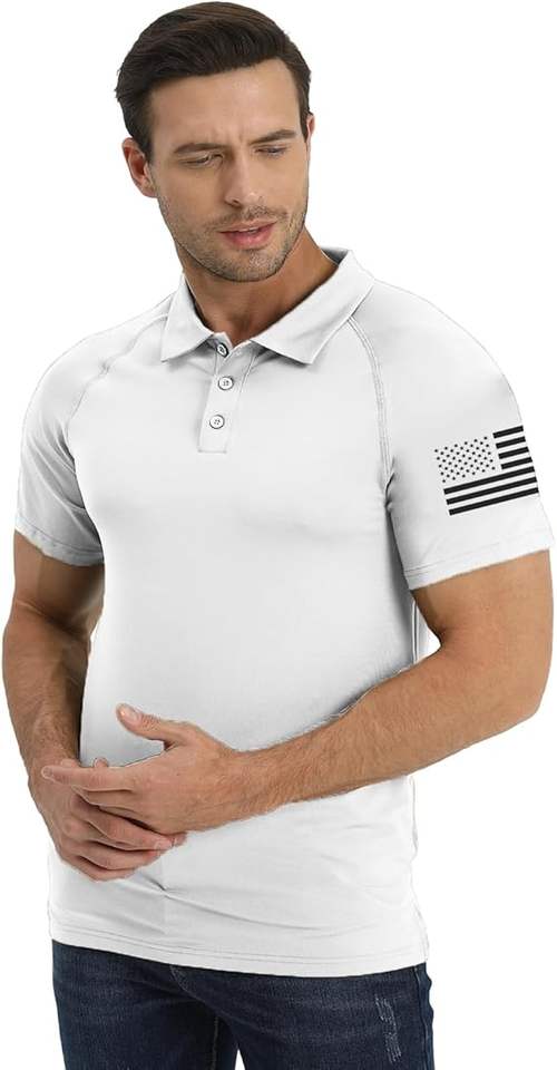 เสื้อโปโลแขนสั้นสำหรับผู้ชายเสื้อโปโลแขนสั้นลายกราฟฟิกแบบลำลองเล่นกอล์ฟแบบผู้รักชาติแบบอเมริกัน