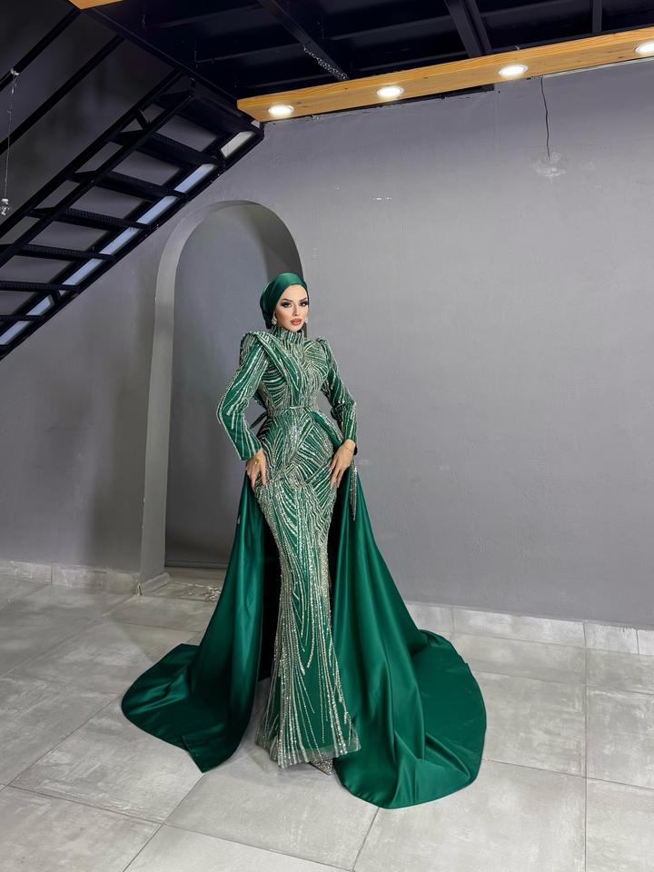 ชุดราตรีทรงเมอร์เมดแขนสั้นประดับเลื่อมยาวกรอมพื้น พร้อมบราในตัว สำหรับผู้หญิง งานเลี้ยง แฟชั่นหรูหรา ชุดออกงาน