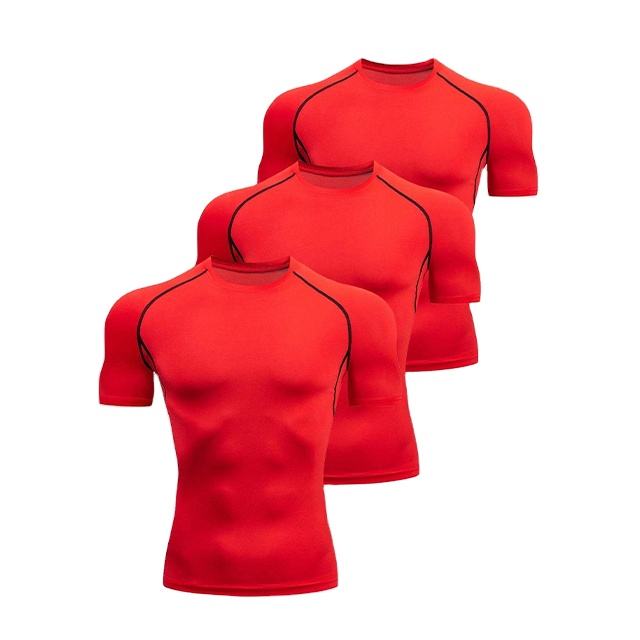แขนสั้นกีฬาเสื้อT Custom GYMขนาดใหญ่การบีบอัดเพาะกายTเสื้อสําหรับชายในโพลีเอสเตอร์ 70% 30% ผ้าสแปนเด็กซ์