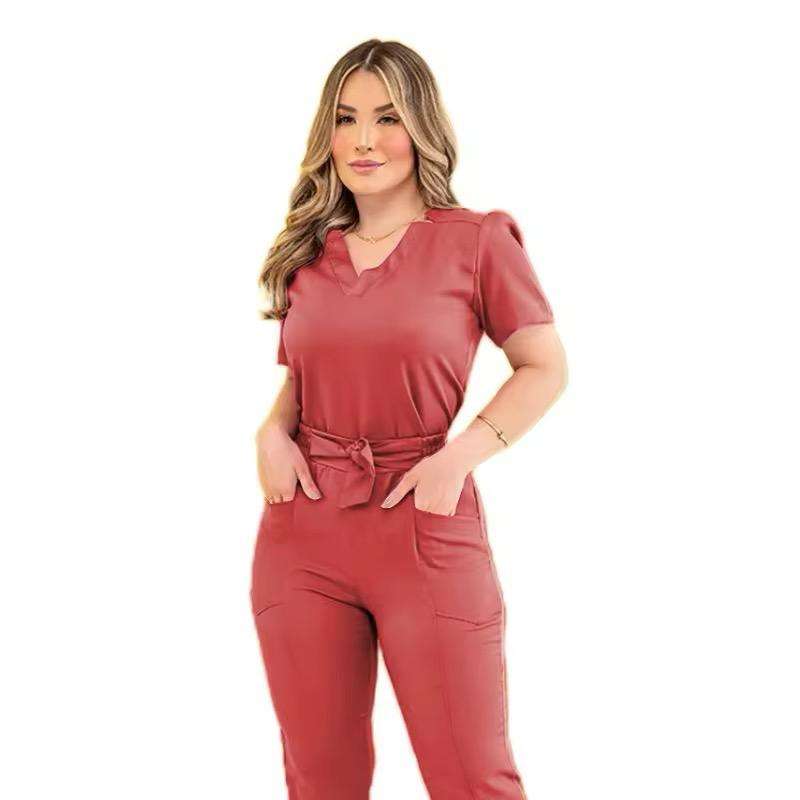 เสื้อสครับแขนสั้นสำหรับผู้หญิง ชุดทำงานในห้องผ่าตัด สำหรับพยาบาลและศัลยแพทย์ ชุดกาวน์ป้องกัน ชุดยูนิฟอร์มสำหรับงานเฉพาะ