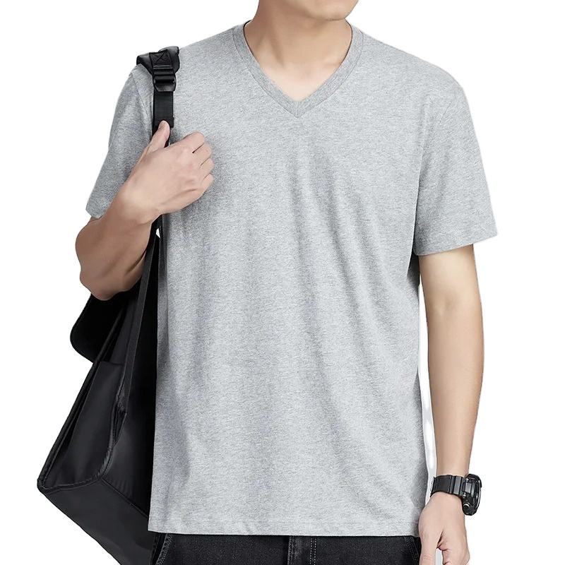 เสื้อแขนสั้นผู้ชาย คุณภาพสูง ผ้าฝ้าย 100% สวมใส่สบาย ทรงหลวมเรียบง่าย คอวี สีพื้น แฟชั่นลำลอง สไตล์ไฮสตรีท