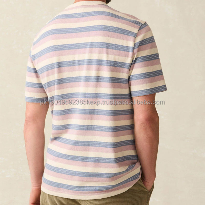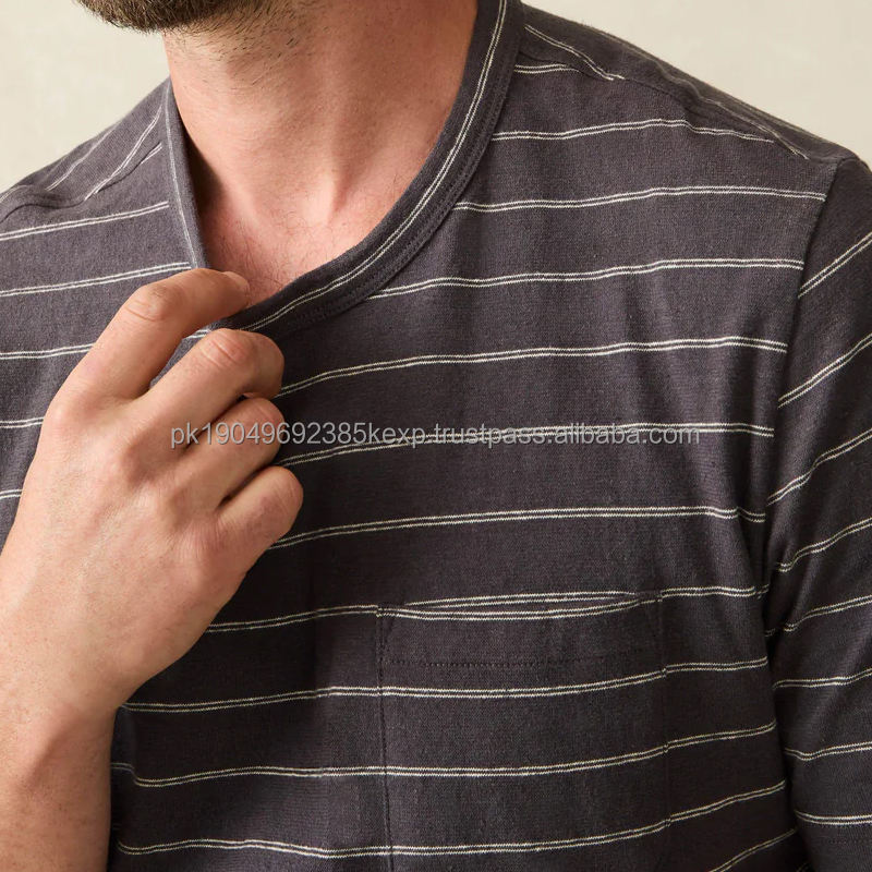 Short-Sleeve Tee for Men Cotton Men's Tshirts Summer Striped T-shirt Organic Tshirt With Pocket Casual t Shirts