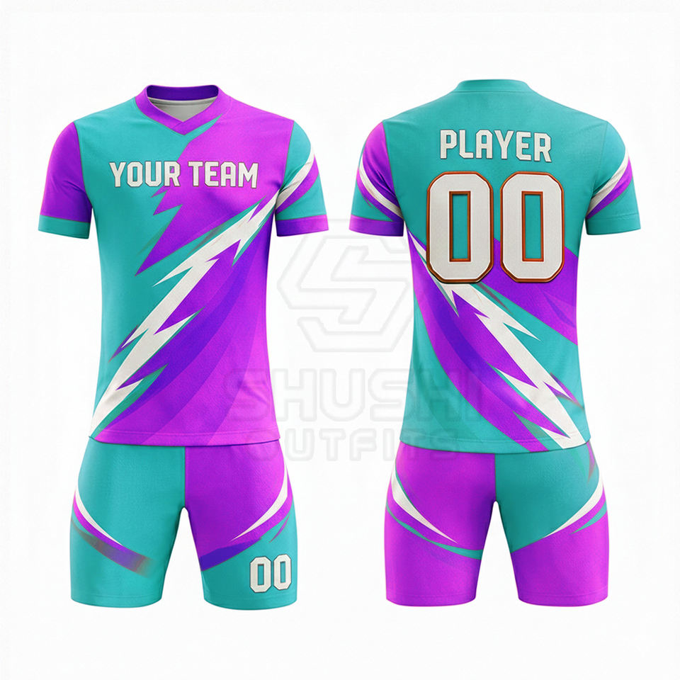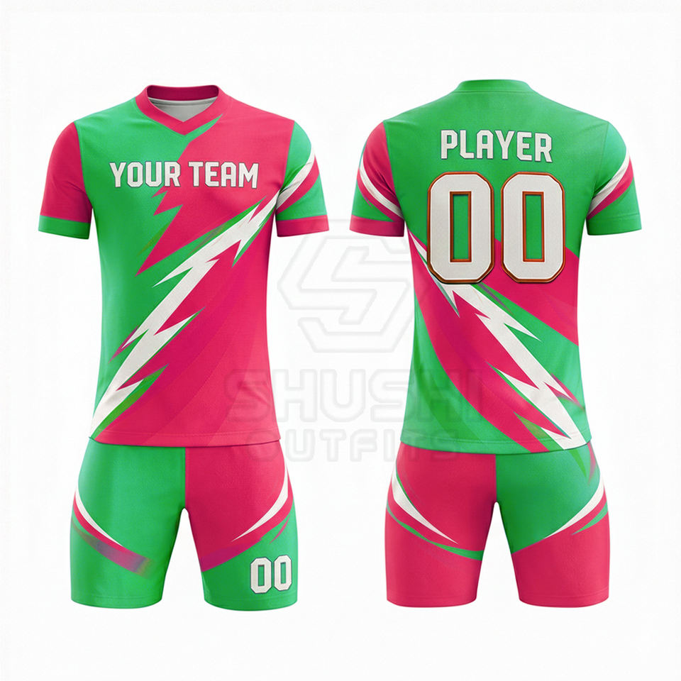 เสื้อฟุตบอลแขนสั้น คอวี ผ้าเจอร์ซีย์ ชุดฟุตบอลชาย แบบสั่งตัดพอดีตัว แห้งเร็ว ระบายอากาศได้ดี ชุดกีฬา ชุดฟุตบอล