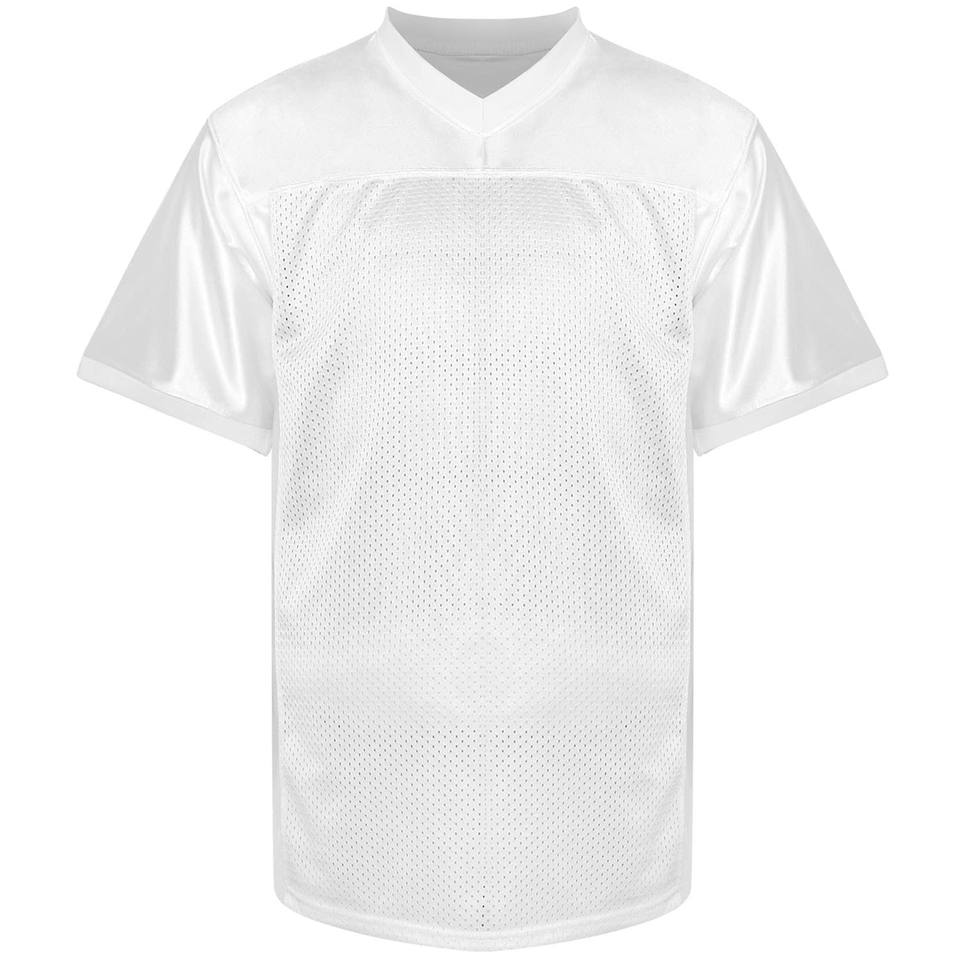 เสื้อฟุตบอลคอวีแขนสั้นพิมพ์ลายเสื้ออเมริกันฟุตบอลระบายอากาศชื่อทีมและโลโก้