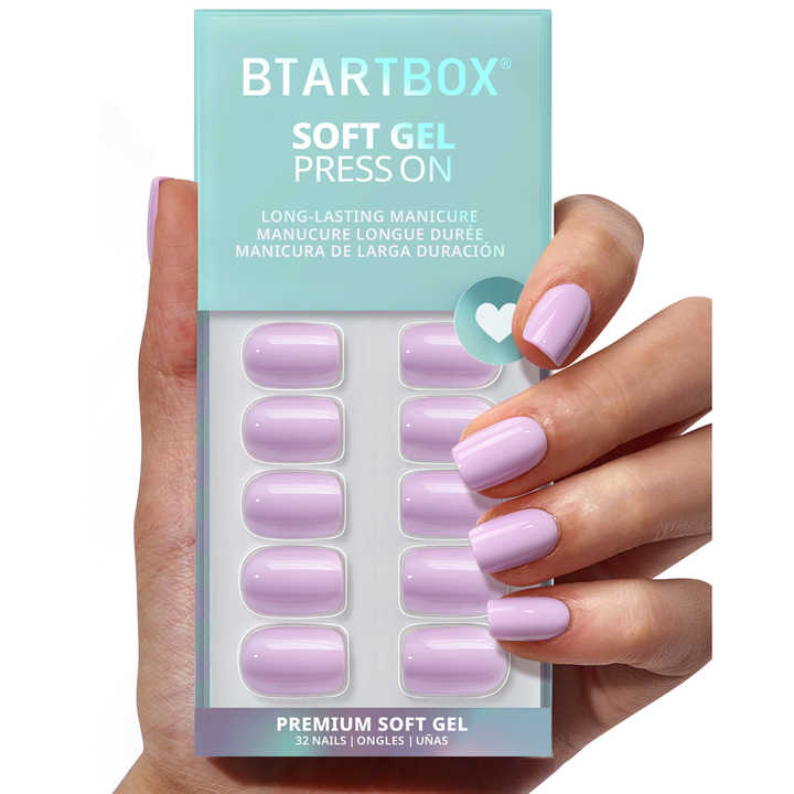 ชุดเล็บปลอมสั้นทรงเหลี่ยมคุณภาพสูง ขายส่ง สีพาสเทล สีม่วง เจลนิ่ม หนา กดติดง่าย