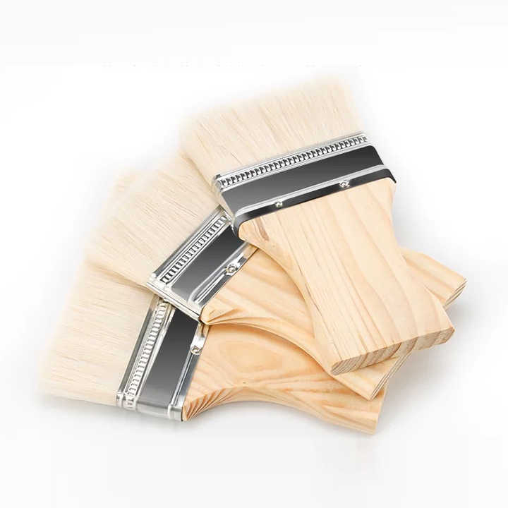 แปรงทาสีขนสัตว์ด้ามไม้ทรงหางบีเวอร์คุณภาพสูง รูปทรงตัวไอ ขนาด 2-5 นิ้ว สำหรับทาสีผนัง DIY OEM/ODM
