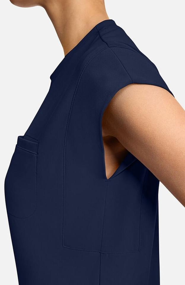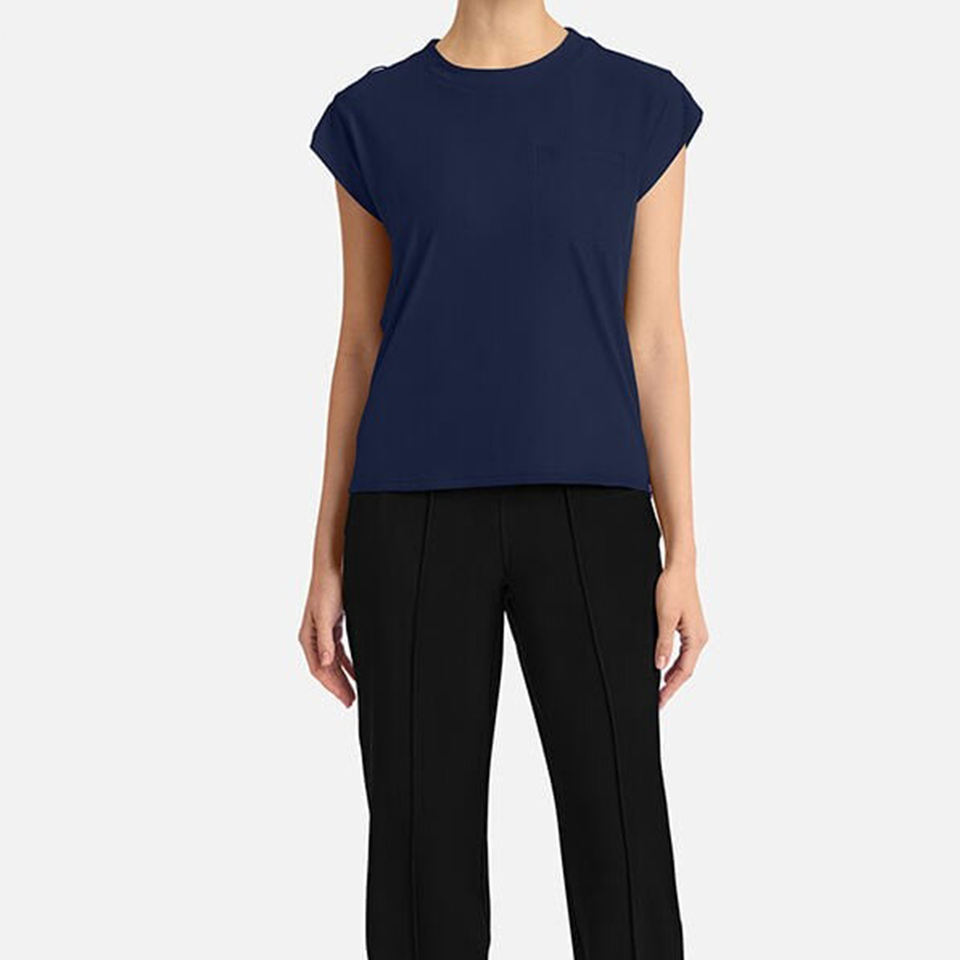 เสื้อสครับผู้หญิงเสื้อคอลูกเรือกระเป๋าหน้าอกแบบเหน็บสีน้ำเงินเข้ม