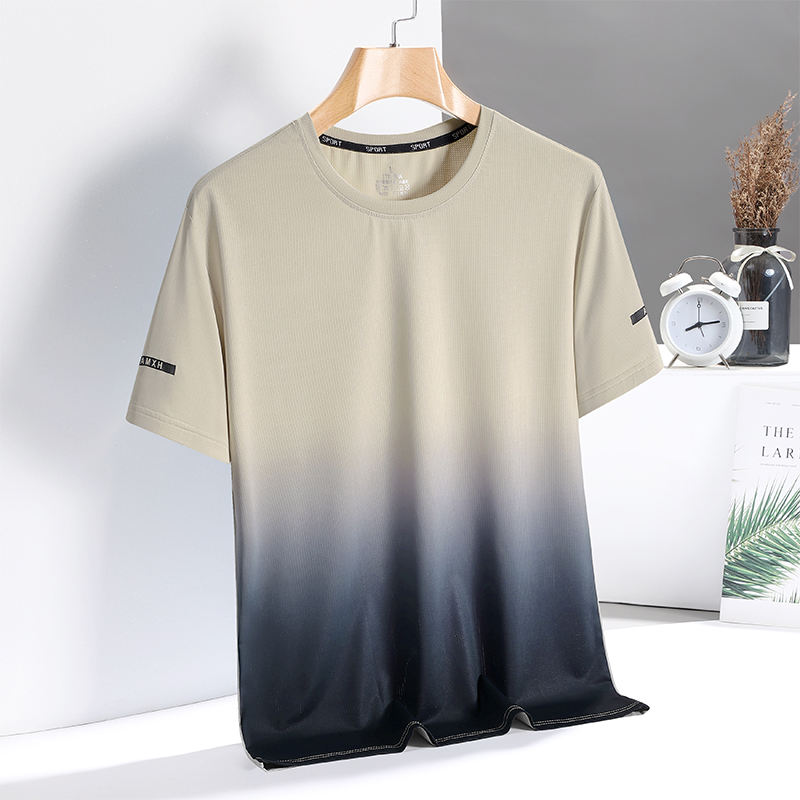 เสื้อยืดแขนสั้นสำหรับผู้ชาย, เสื้อยืดพิมพ์ลายไล่ระดับสีสวมใส่สบายแห้งเร็วเสื้อทรงหลวมกีฬาแฟชั่นสุดฮิต