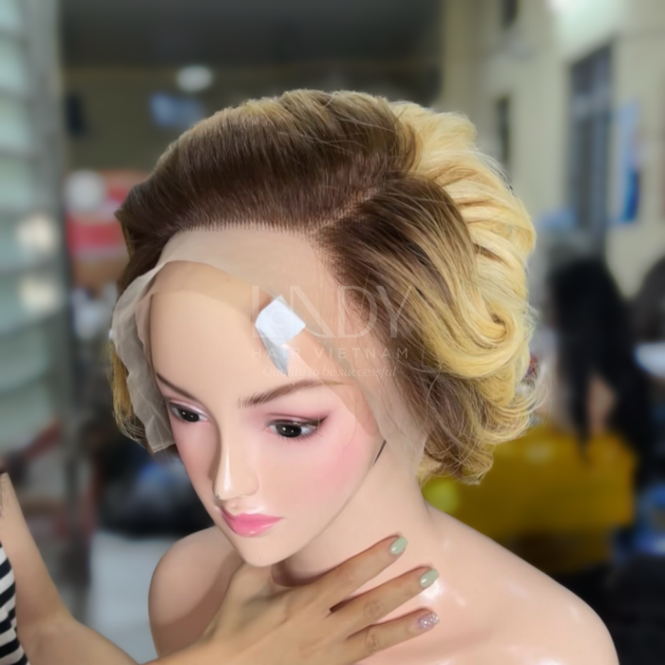 วิกผมสั้นสีบลอนด์ ลอนคลื่นธรรมชาติ ทำจากผมแท้เวียดนาม ขายส่ง