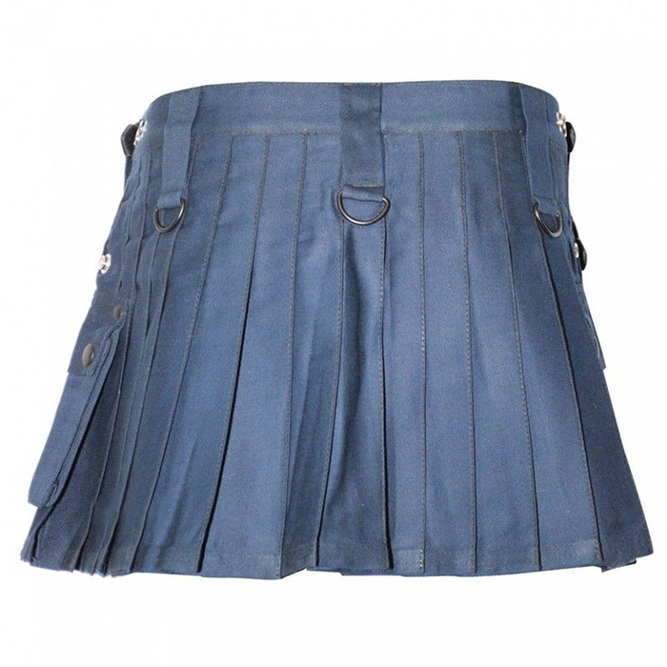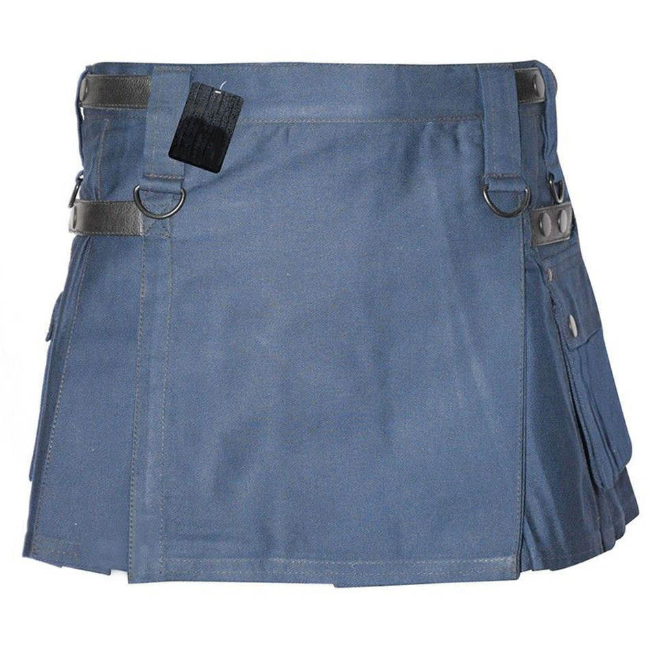 กางเกงคิลท์อเนกประสงค์สำหรับผู้หญิงไซส์เล็ก สีกรมท่า รุ่นใหม่ สายหนังสี่เส้น กระเป๋าคาร์โก้ สไตล์สก็อตแบบดั้งเดิม