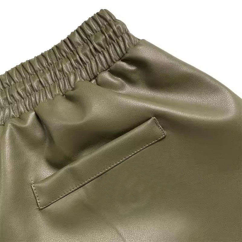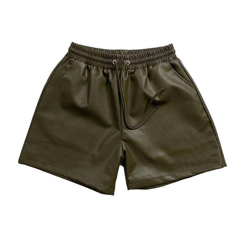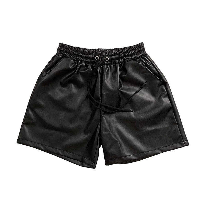 กางเกงขาสั้นผู้ชายสำหรับกิจกรรมกลางแจ้ง ระบายอากาศได้ดี กางเกงหนังผู้ชาย กางเกงหนัง PU สีดำ กางเกงหนัง unisex