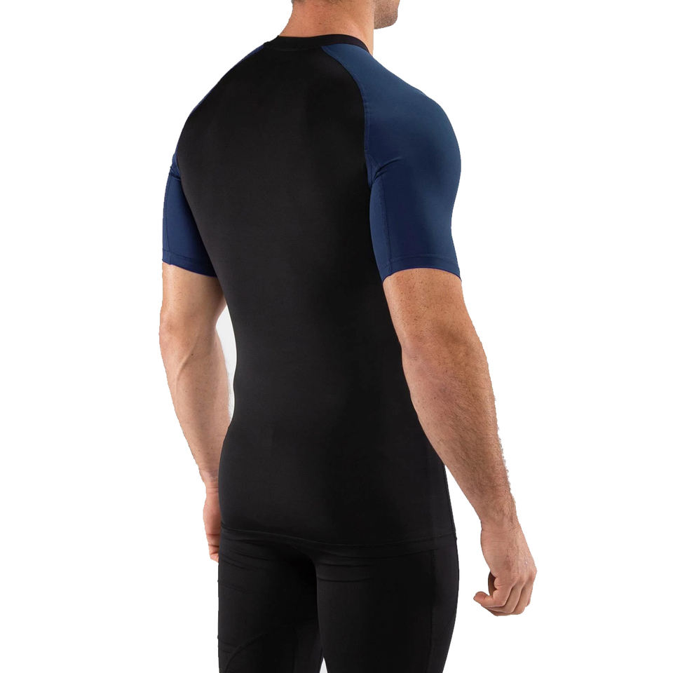 เสื้อรัดรูปของลูกเรือผ้าสแปนเด็กซ์โพลีเอสเตอร์แขนสั้นระบายอากาศกันยูวีป้องกันแสงแดด