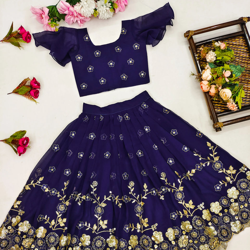 Shoryam Fashion Kids Traditional Indian Wedding Party Wear Navy Blue Sequined Embroidery Fully Stitched Floor-Length Lehenga