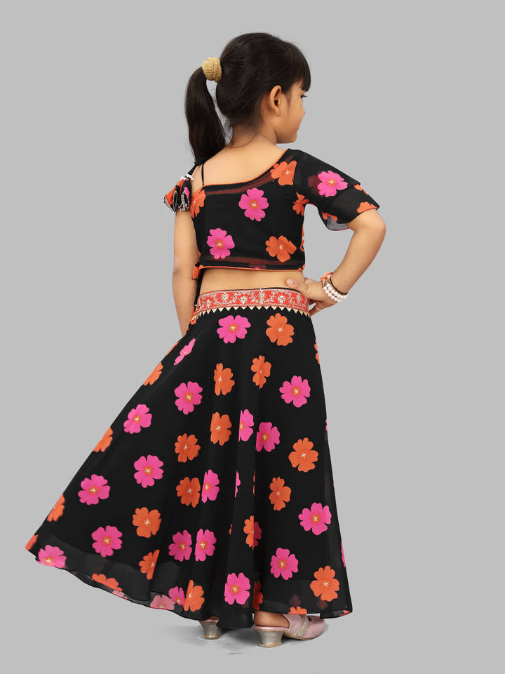 ชุดเลเฮนกาโชลีผ้าออร์แกนซ่าลายดอกไม้สีดำสุดหรูสำหรับเด็กผู้หญิงจากชอริยัม แฟชั่น | ชุดงานแต่งงานแบบยาวสไตล์ร่วมสมัยสำหรับชาวต่างชาติ