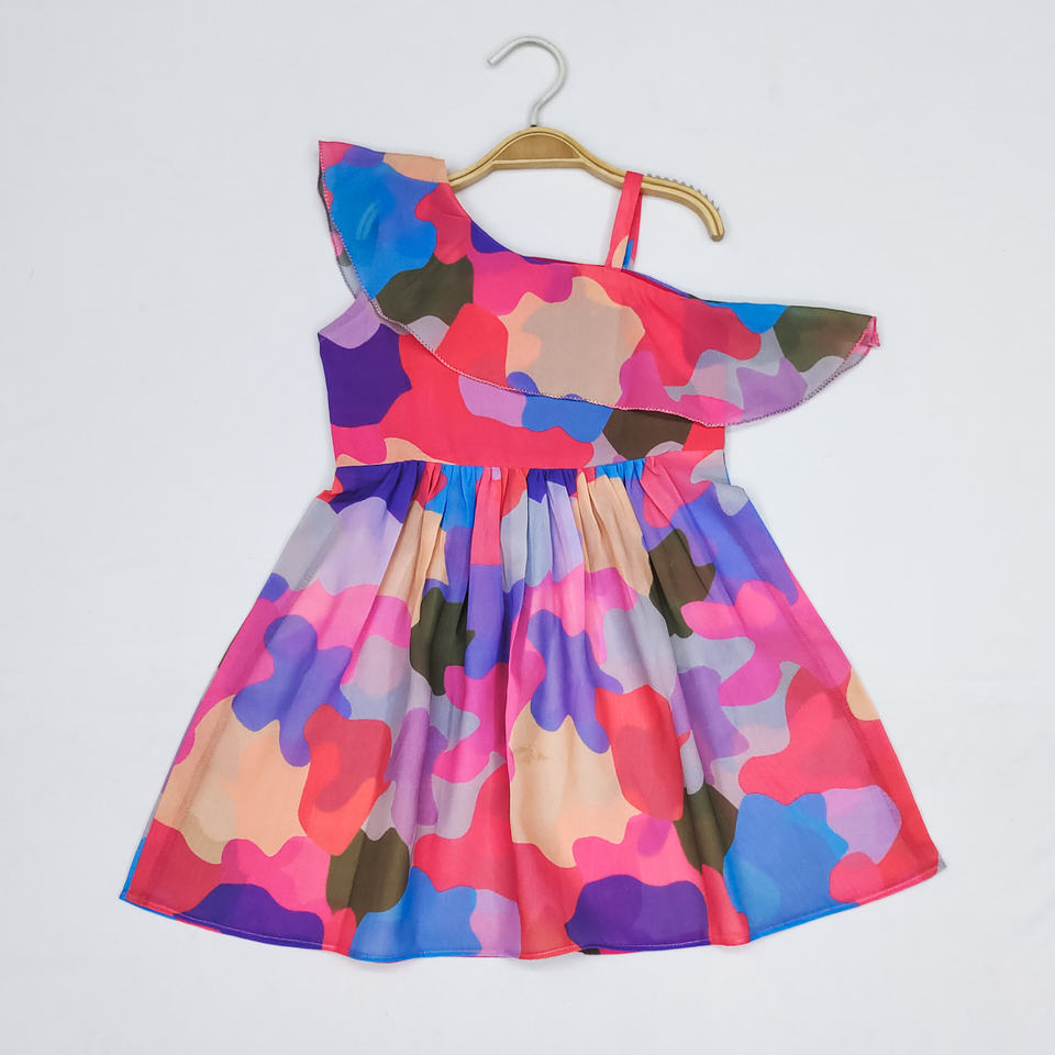 ชุดเดรสแฟชั่น Shoryam หลากสีสำหรับเด็กผู้หญิง ตัดเย็บอย่างดี แห้งเร็ว เหมาะสำหรับงานปาร์ตี้ แบบไหล่เดียว แขนระบาย ลายพิมพ์ กระโปรงบาน