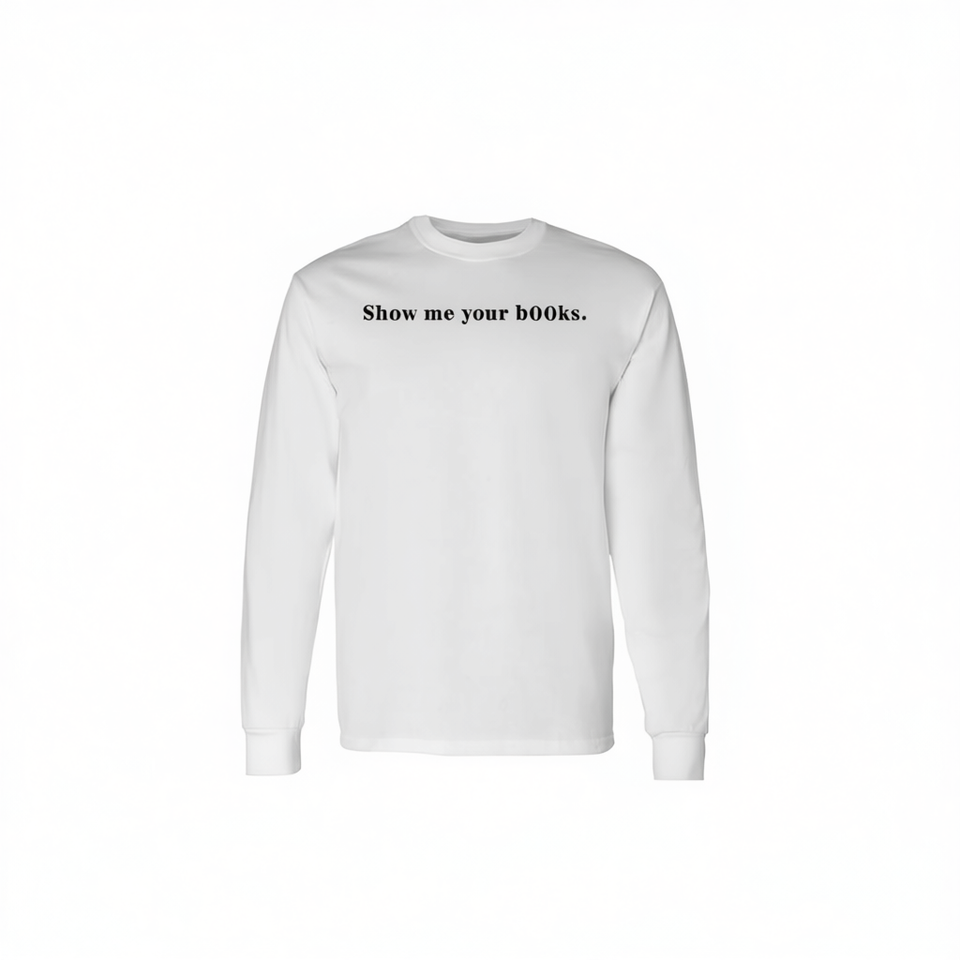 แสดงให้ฉันเห็นเสื้อยืดแขนยาวลายหนังสือของคุณ ดีไซน์สำหรับคนรักหนังสือ