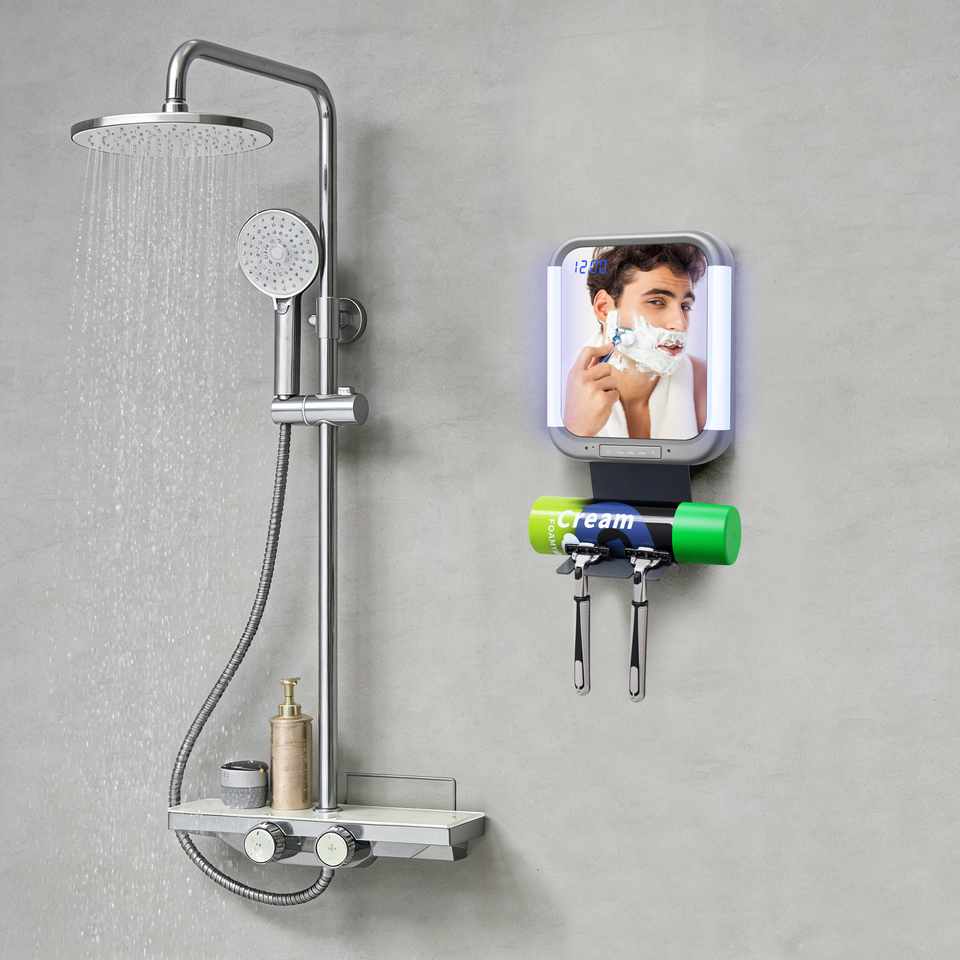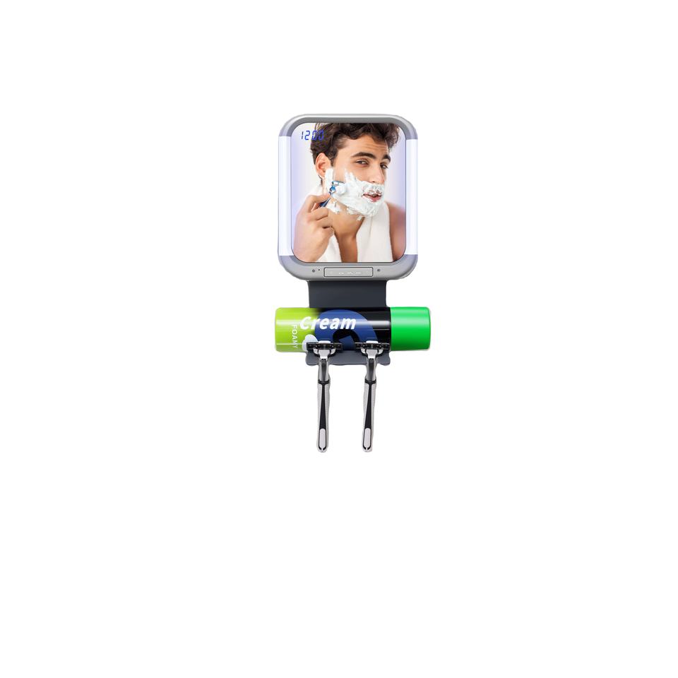 กระจกห้องอาบน้ำพร้อมวิทยุ ลำโพงไร้สาย และไฟนาฬิกา LED