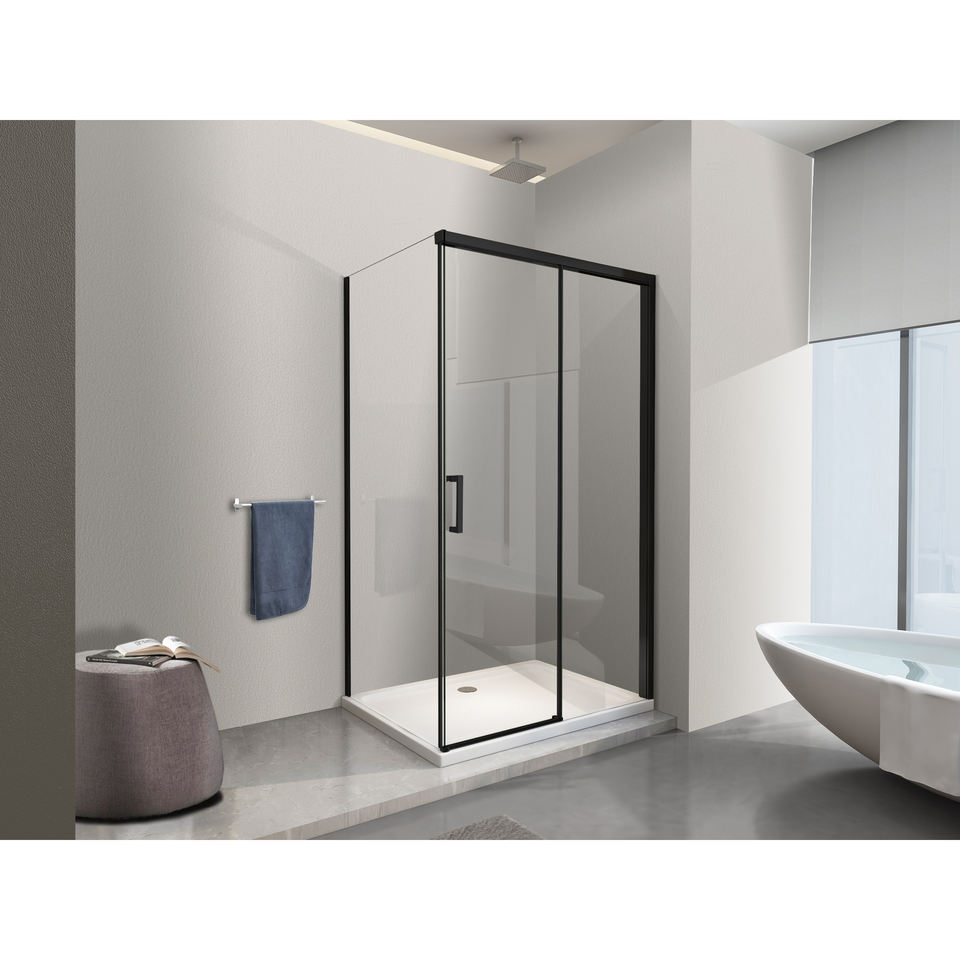 กล่องอาบน้ำที่มีผนังด้านข้างคงที่และประตูหน้าพร้อมการปิดแบบนุ่มนวล H200กรอบสีดำด้าน8มม. 70ซม. (68-70) X150 (147-