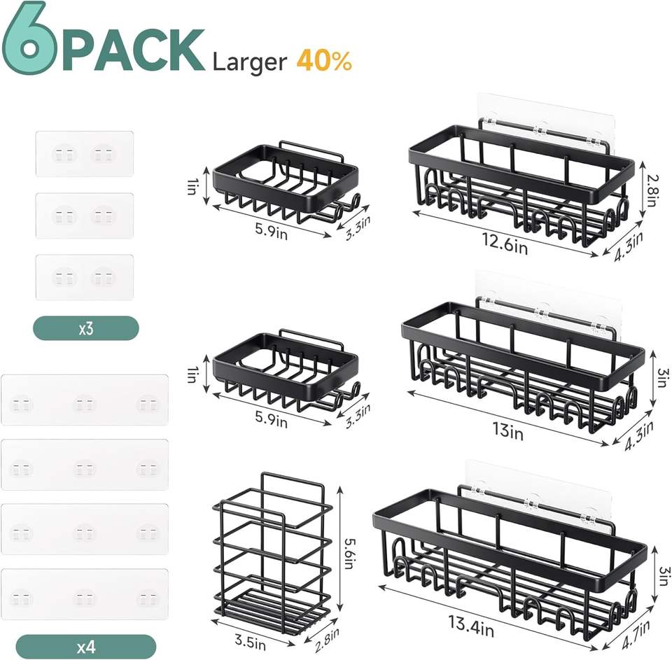 ชุดชั้นวางของในห้องอาบน้ำ 6 ชิ้น ดีไซน์ทันสมัย เป็นมิตรกับสิ่งแวดล้อม ป้องกันสนิมขั้นสูง ไม่ต้องเจาะ ติดด้วยกาว ที่วางสบู่ ความจุขนาดใหญ่ สำหรับห้องน้ำ