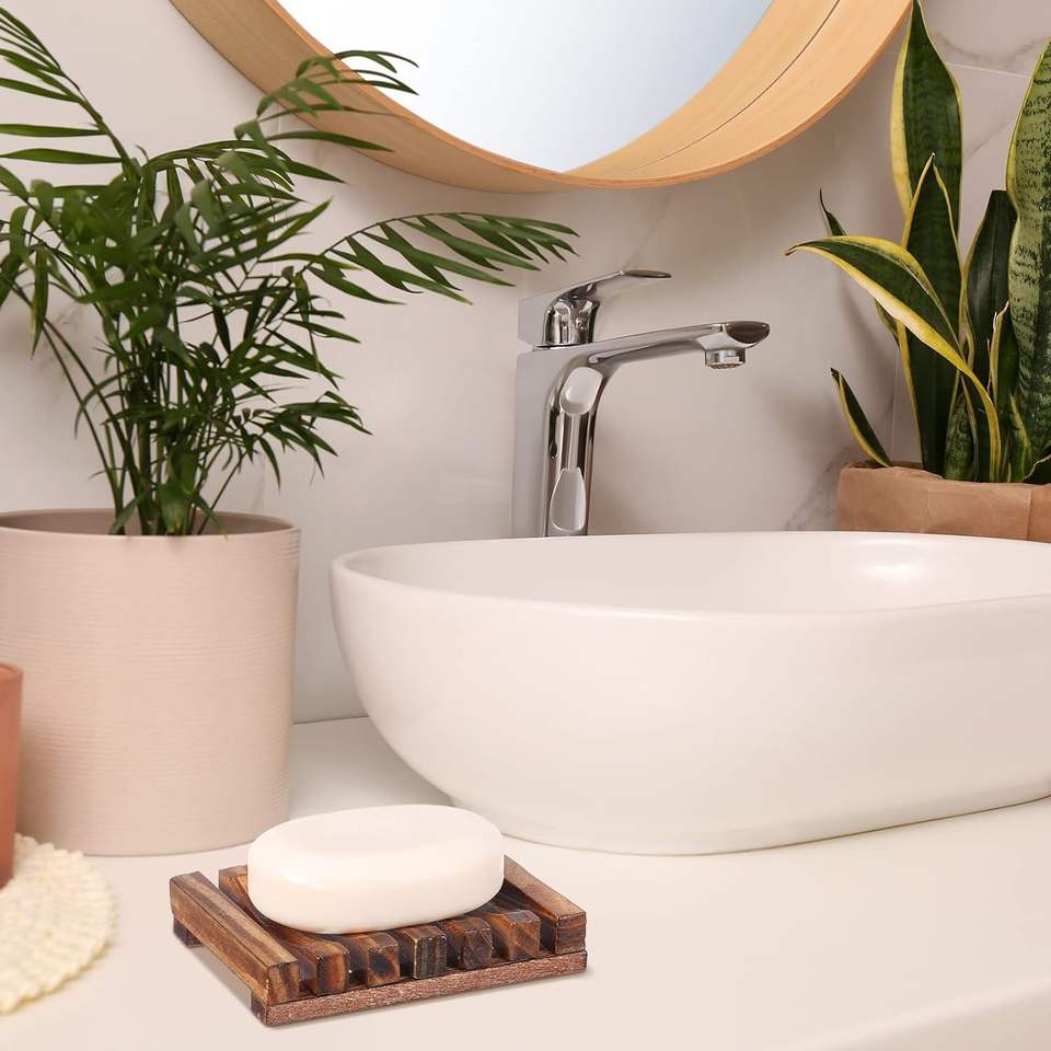 ที่วางสบู่อาบน้ำที่ทำจากไม้ช่วยในการระบายน้ำถาดสีน้ำตาลที่วางสำหรับใช้ในห้องครัวห้องน้ำฟองน้ำสำหรับเดินทางในห้องครัว