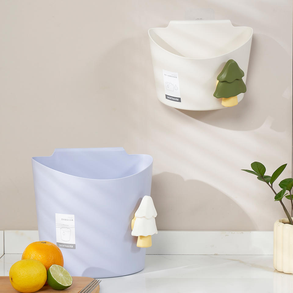 ถังขยะติดผนังโชว์ทราน 4 ลิตร รูปทรงตัว D ถังเก็บของแบบแขวนสำหรับห้องครัว ห้องน้ำ ใช้ภายในอาคาร