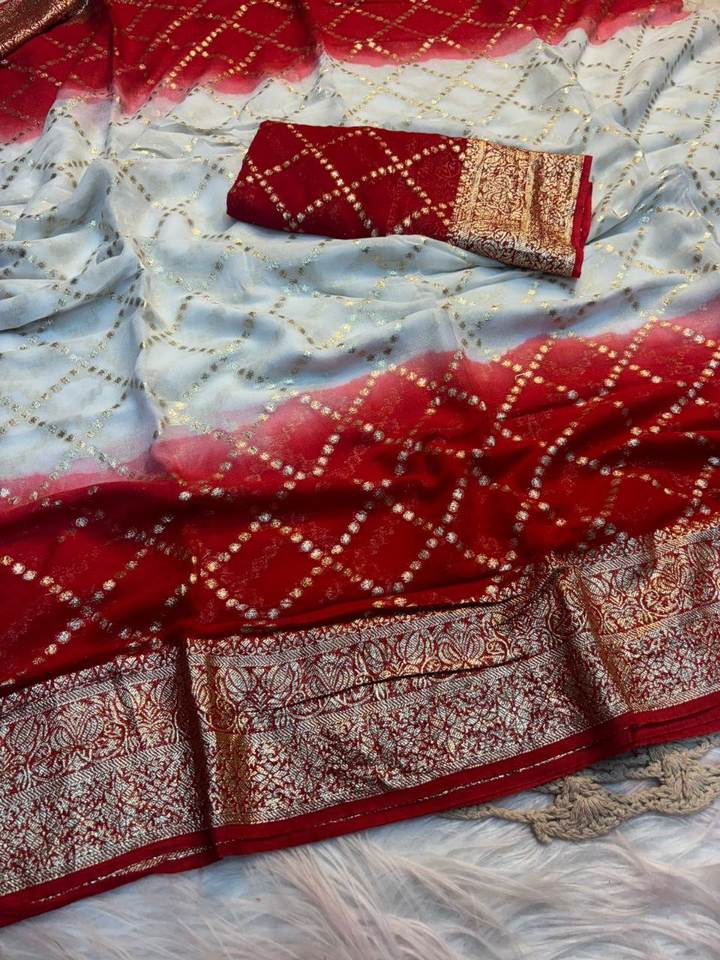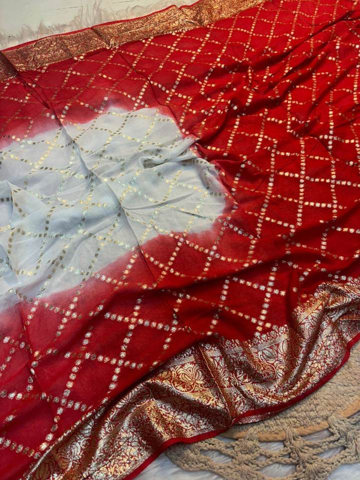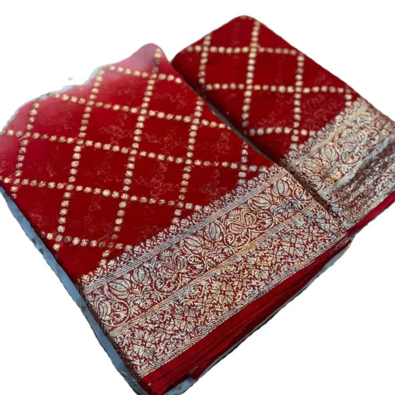 Shree ชุดซารีสำหรับเจ้าสาวผ้าพิมพ์ลายชิเวกซ์สองโทนสีวิสคอสจากอินเดีย