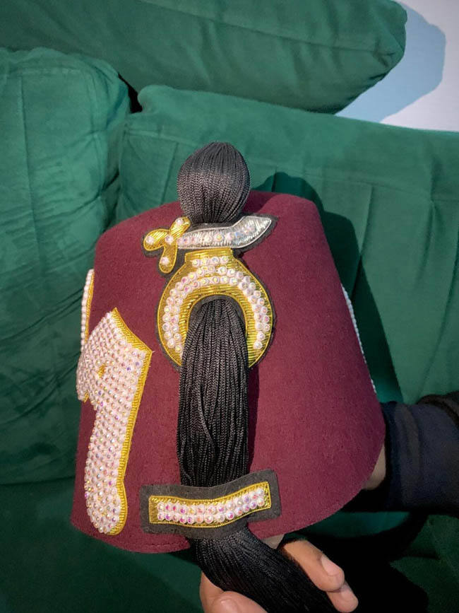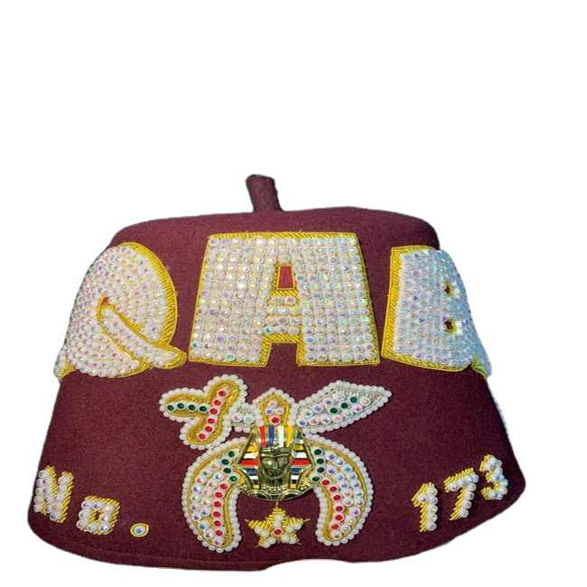 Product name:Fez Hat Pure White Silk With Thread Hand Embroidery and Rhinestones
