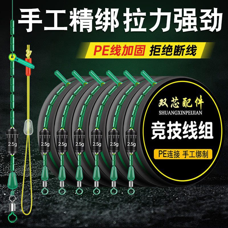 ชุดสายเบ็ดตกปลา Shuangxinpeijian แบบแข่งขัน สายถักเสริมแรง PE แบบ Double Taper น้ำหนัก 2.5 กรัม ความแข็งแรงสูง ผลิตด้วยมือ