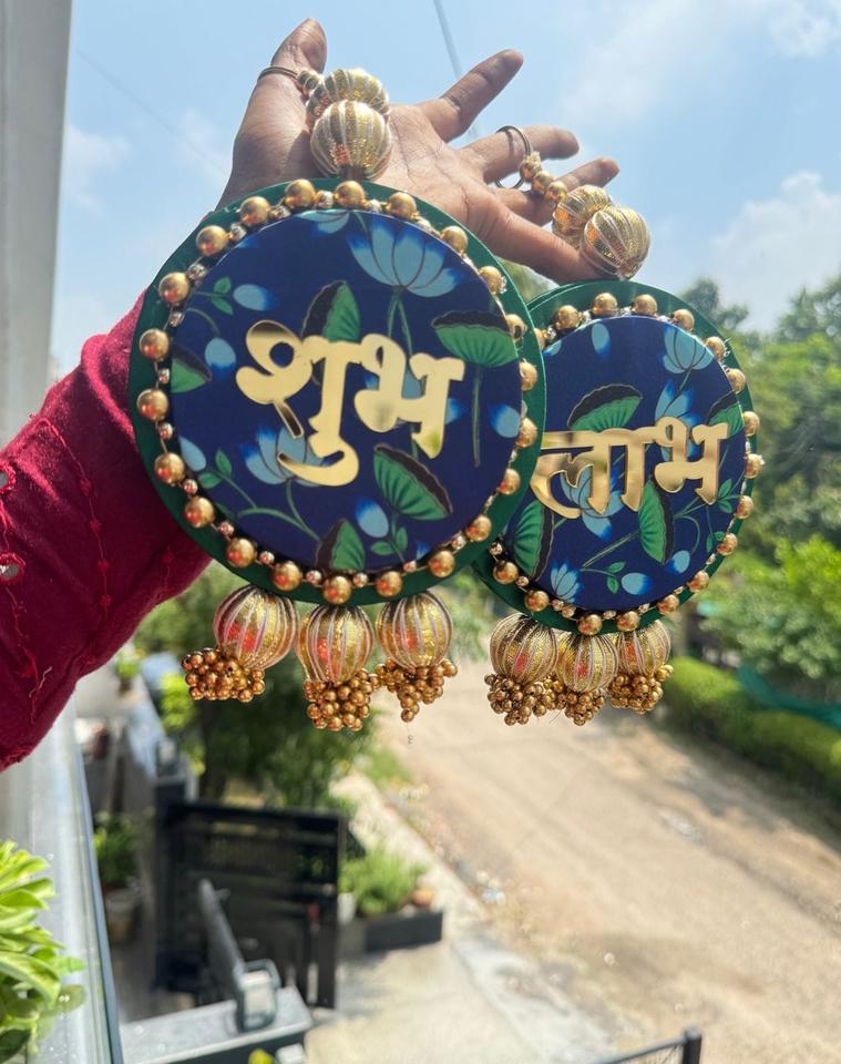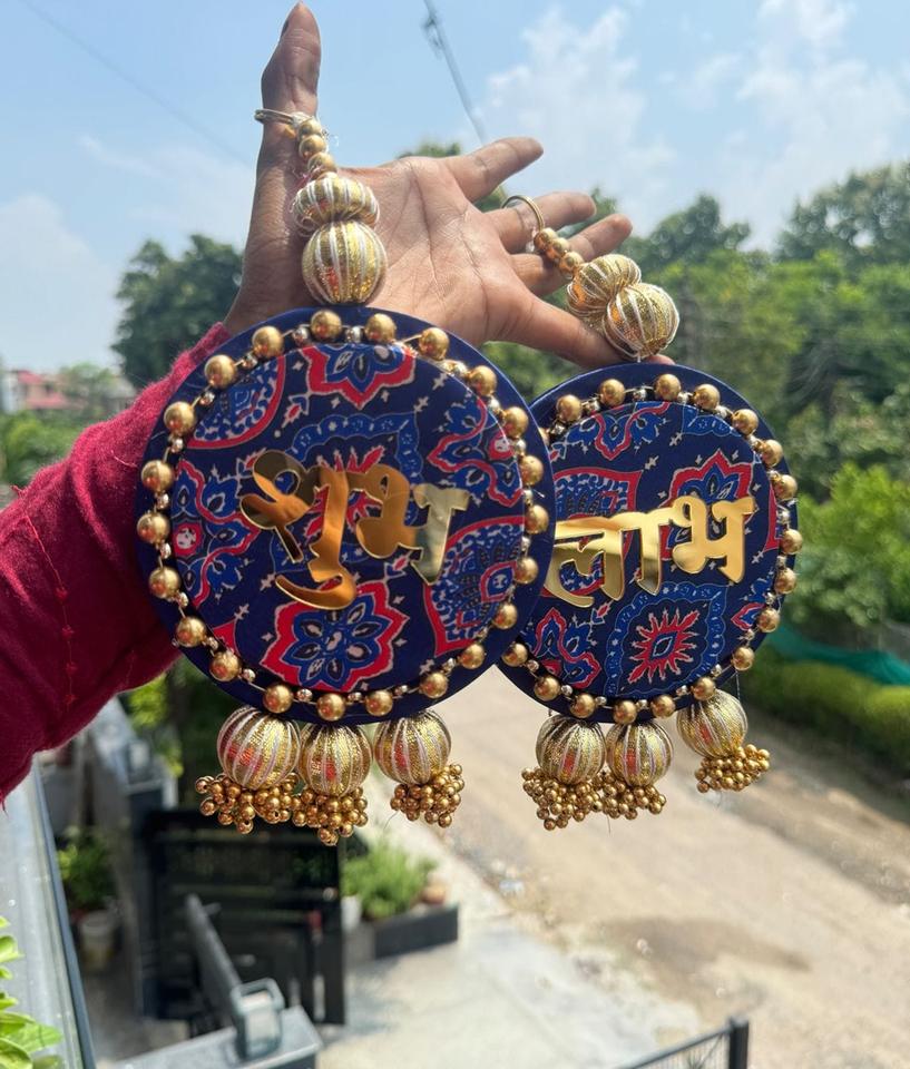 พระพิฆเนศขนาดเล็ก shubh labh คู่ตกแต่ง MDF toran hangings