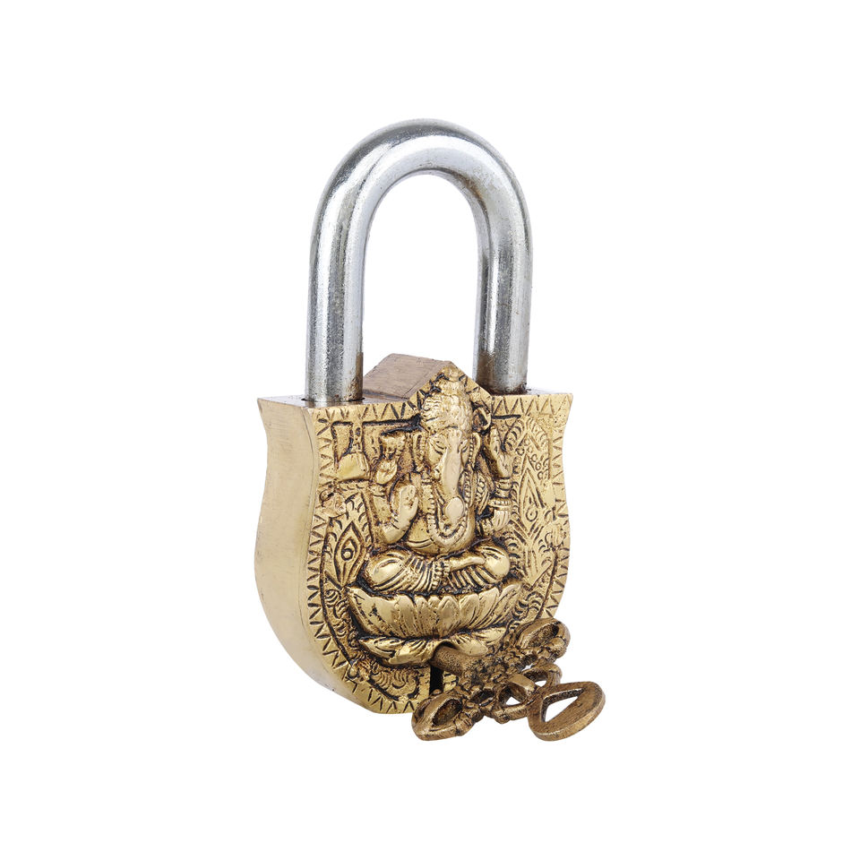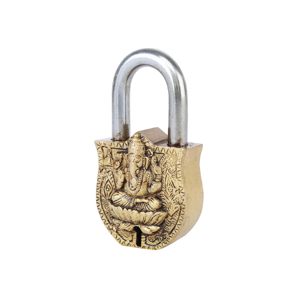 พระพิฆเนศทองเหลืองชุบทอง 300 กรัม งานแกะสลักขัดเงา ของตกแต่งบ้านทางศาสนา พร้อมกุญแจล็อคเพื่อความปลอดภัย