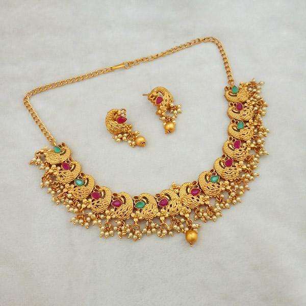 ชุดเครื่องประดับชั้นดี shubham หินทองแดงสีน้ำตาลและสีเขียว pota Necklace-FBK0030A