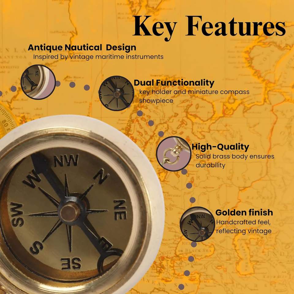 พวงกุญแจเข็มทิศทองเหลืองโบราณทำมือ ยี่ห้อ Ross London สไตล์วินเทจ สำหรับใช้ในชีวิตประจำวันหรือเป็นของตกแต่ง (สีทอง)