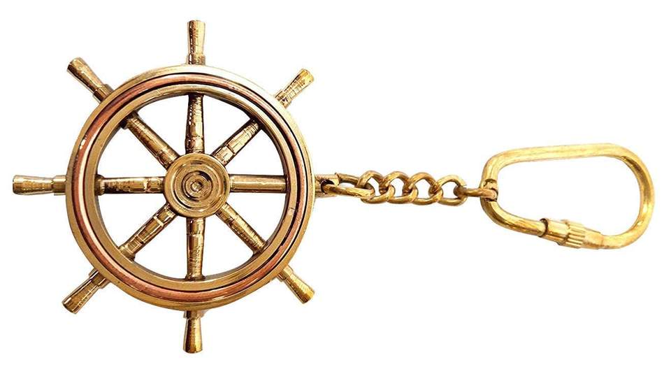 Shubham พวงกุญแจล็อคล้อเรือทองเหลืองโบราณทำด้วยมืออย่างสวยงามทำด้วยมือของตกแต่งทะเล (สีทอง)