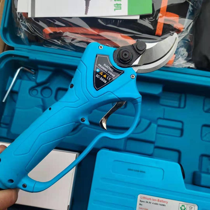 กรรไกรตัดกิ่งไฟฟ้า Shuchang รุ่น SC-3608 แบตเตอรี่ลิเธียมแบบชาร์จได้ เครื่องมือทำสวนไร้สาย สำหรับคนถนัดขวา รัศมีการตัด 1 นิ้ว