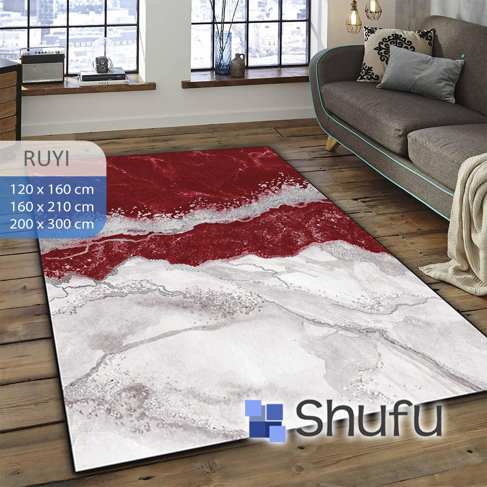พรมปูพื้นลายพิมพ์ Shufu Modern Medium Pile ผลิตจากผ้าแฟลนเนล ฐานยางเทอร์โมพลาสติก กันลื่น ป้องกันสารก่อภูมิแพ้ สำหรับปูพื้นในห้อง