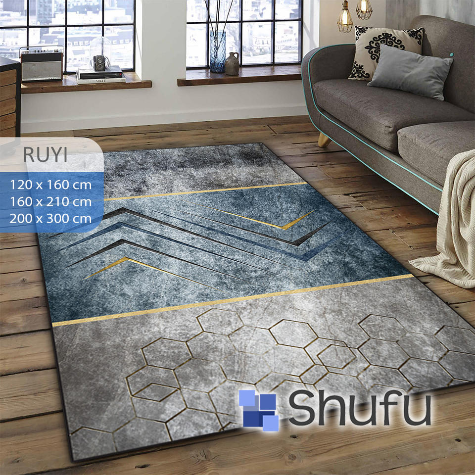 SHUFU ชุดพรมพลาสติกผ้าสักหลาดนุ่มกันลื่นแบบทันสมัยทำจากโพลีเอสเตอร์กันแพ้ซักได้ลายนามธรรม