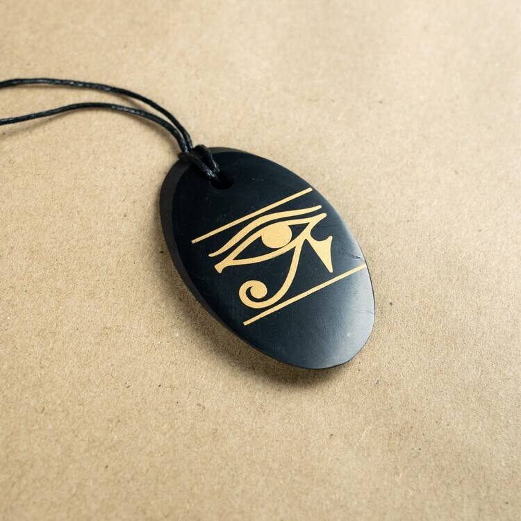 Shungite ตัดจี้ขัดรูปไข่กับการพิมพ์ซิลค์สกรีนของฮอรัสตัวเลือก1 1.3*2ใน (34*50มม.)