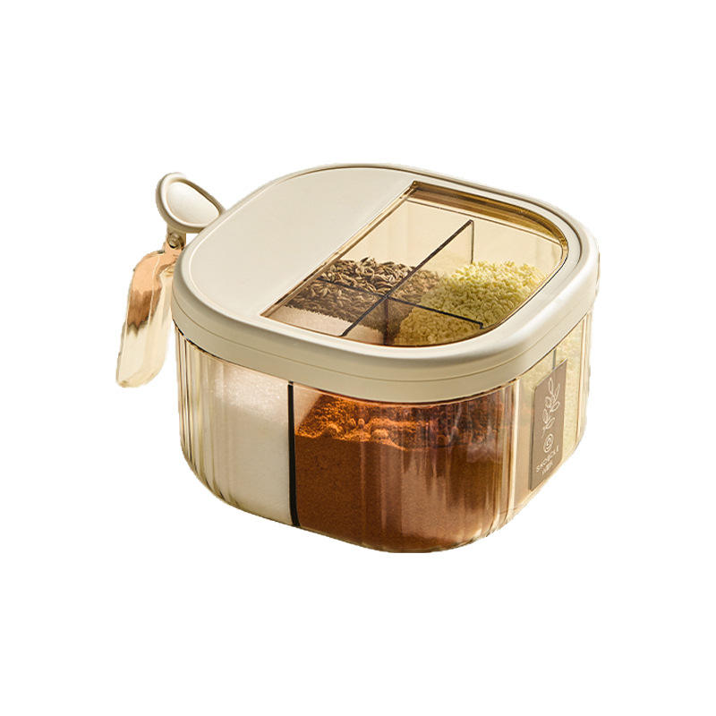 กล่องใส่เครื่องปรุงรสสี่ช่องใสหรูหรา - สีขาวมุก