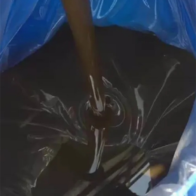 The brown, viscous liquid
