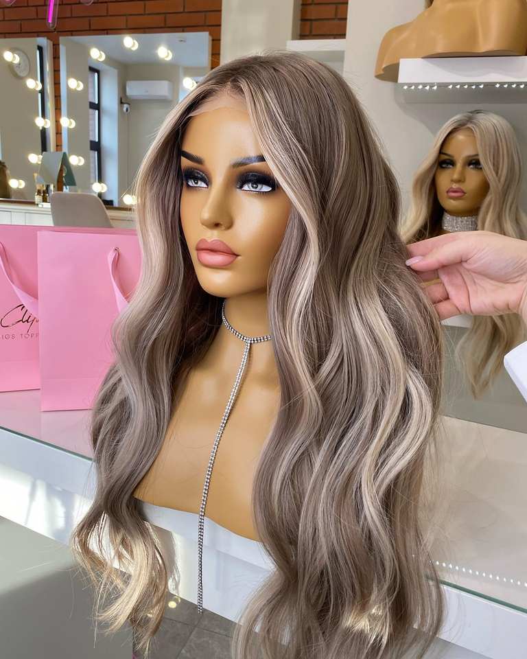 วิกผมมนุษย์ดิบยุโรปคลื่นสีบลอนด์ติดลูกไม้ด้านหน้าขนาด13*4นิ้ว